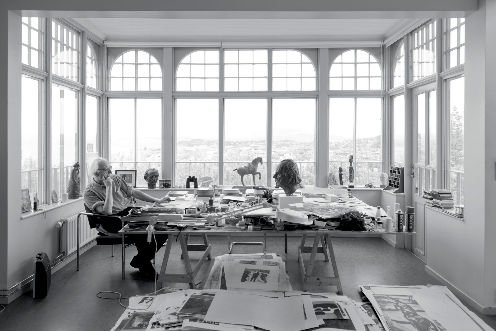 kostet ham mange år. Han underviste arkitekturstudentene ved NTH i Trondheim i ti år. «Det var en flott tid! Jeg fant ikke tilbake til meg selv før jeg begynte å undervise. Jeg lærte mye av studentene. Som når jeg gned kullet inn i papiret. På Kunstakademiet ville teknikken blitt fordømt,» sier han lakonisk.