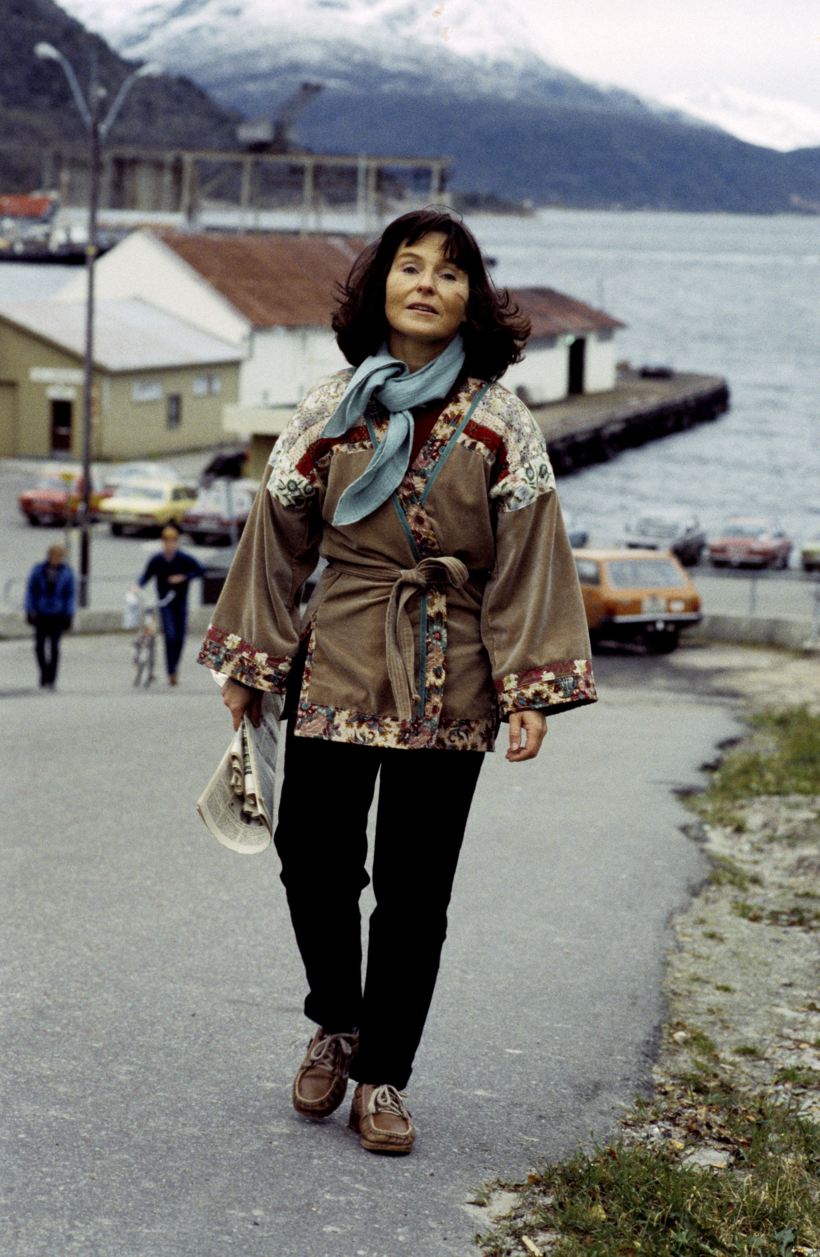 sukk. Fiskeren har ansiktet mot henne