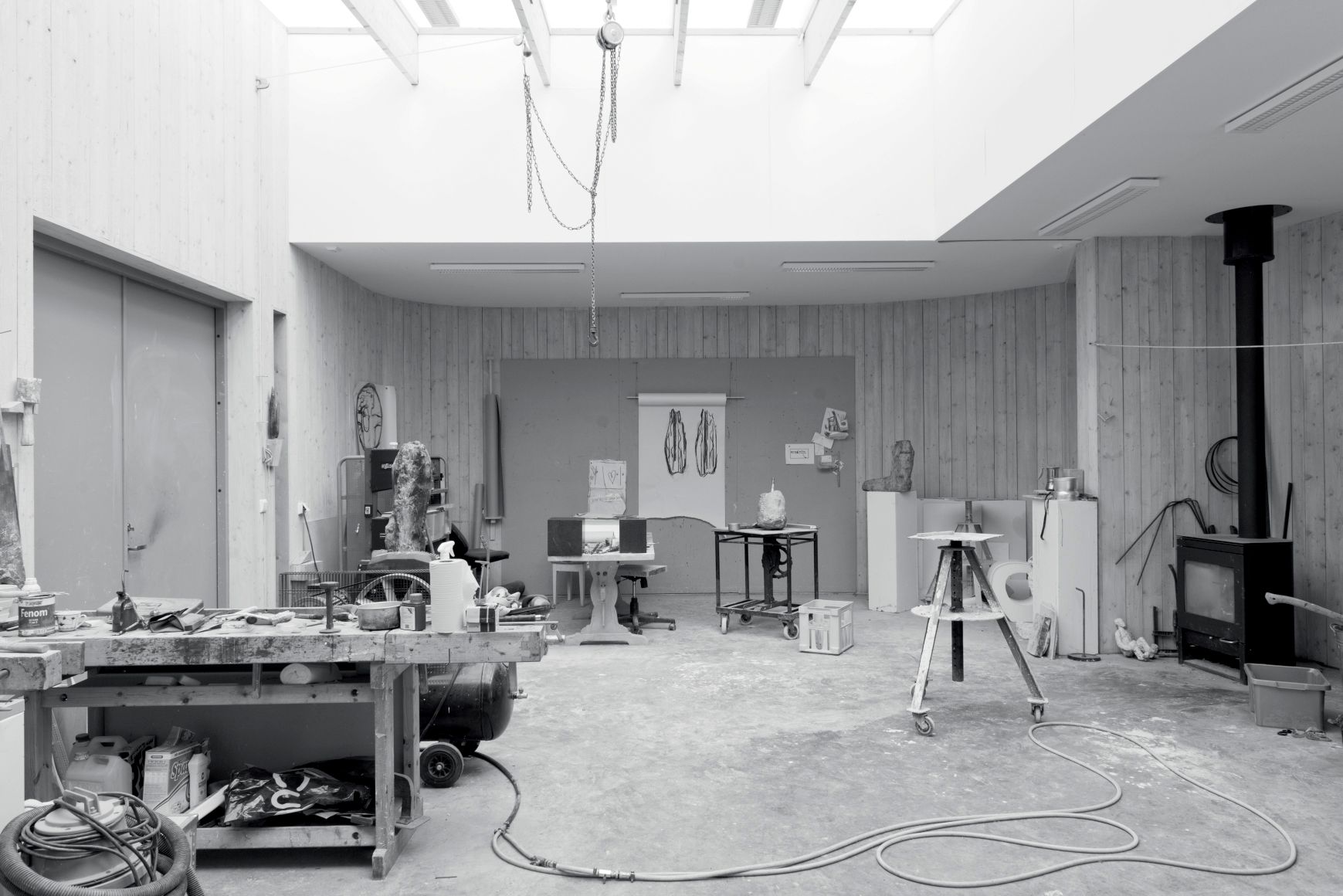 Mursteinstykt, grønnlig koøyeglass står i en krok – og skal inn i en bronseskulptur, som en inntransplantert monokkel. «Dette glasset er ikke lenger mulig å oppdrive,» sier Blystad. På veggen henger store skisser av et forunderlig stykke drivved fra Heestrand i Bohuslän, der Blystad har det han kaller et smutthull. Verket skal hete Flammen og skal til sist hugges ut av en stor, mørk steinblokk.